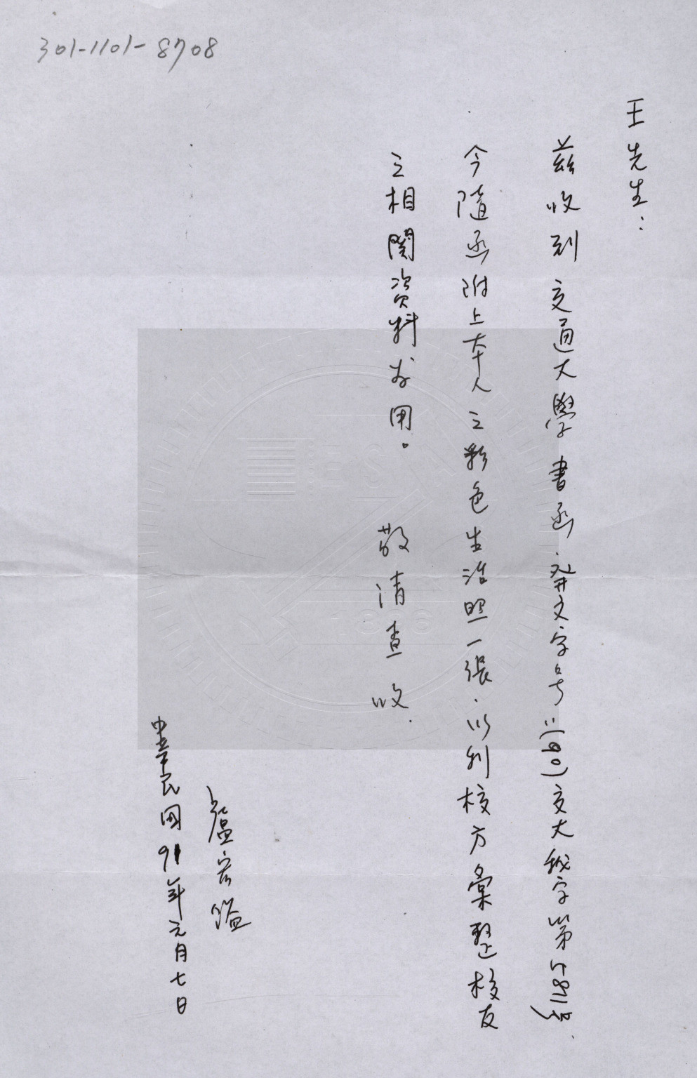 典藏地:交大校區 說明:交通大學傑出校友盧宏鎰先生資料。1、盧宏鎰先生信函。2、盧宏鎰先生照片一張。 資料類型:照片 典藏號:301-1101-8708 品名:交通大學傑出校友盧宏鎰先生資料 作者:- 年代:1998 出版者:- 數量:2件 稽核資料:W12 x H18 cm 版本: 手稿、照相複本 作品語文: - 關鍵詞:交通大學、傑出校友、盧宏鎰 權利聲明:國立陽明交通大學圖書館珍藏資料,如需引用,請註明來源。 取用權:開放