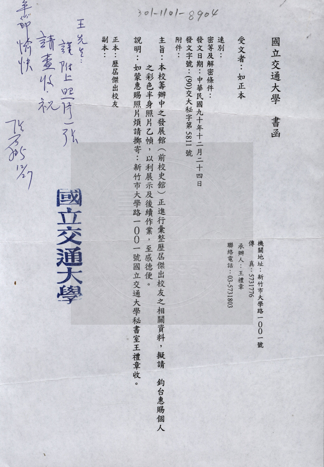 典藏地:交大校區 說明:交通大學傑出校友張石麟先生資料。 資料類型:照片 典藏號:301-1101-8904 品名:交通大學傑出校友張石麟先生資料 作者:- 年代:2000 出版者:- 數量:1件 稽核資料:W4 x H5 cm 版本: 照相複本 作品語文: - 關鍵詞:交通大學、傑出校友、張石麟 權利聲明:國立陽明交通大學圖書館珍藏資料,如需引用,請註明來源。 取用權:開放