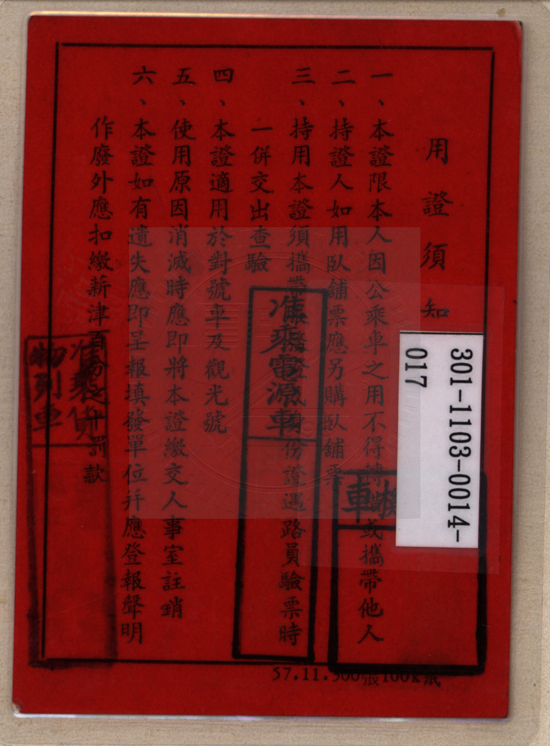 典藏地:交大校區 說明:陳樹曦學長之臺灣鐵路管理局長期公務乘車證。 資料類型:稽憑資料 典藏號:301-1103-0014-017 品名:臺灣鐵路管理局長期公務乘車證-陳樹曦 作者:- 年代:1969 出版者:台灣鐵路管理局 數量:1件 稽核資料:- 版本: 其他 作品語文: 中文 關鍵詞:台灣鐵路管理局、公務乘車證、陳樹曦 權利聲明:國立陽明交通大學圖書館珍藏資料,如需引用,請註明來源。 取用權:開放