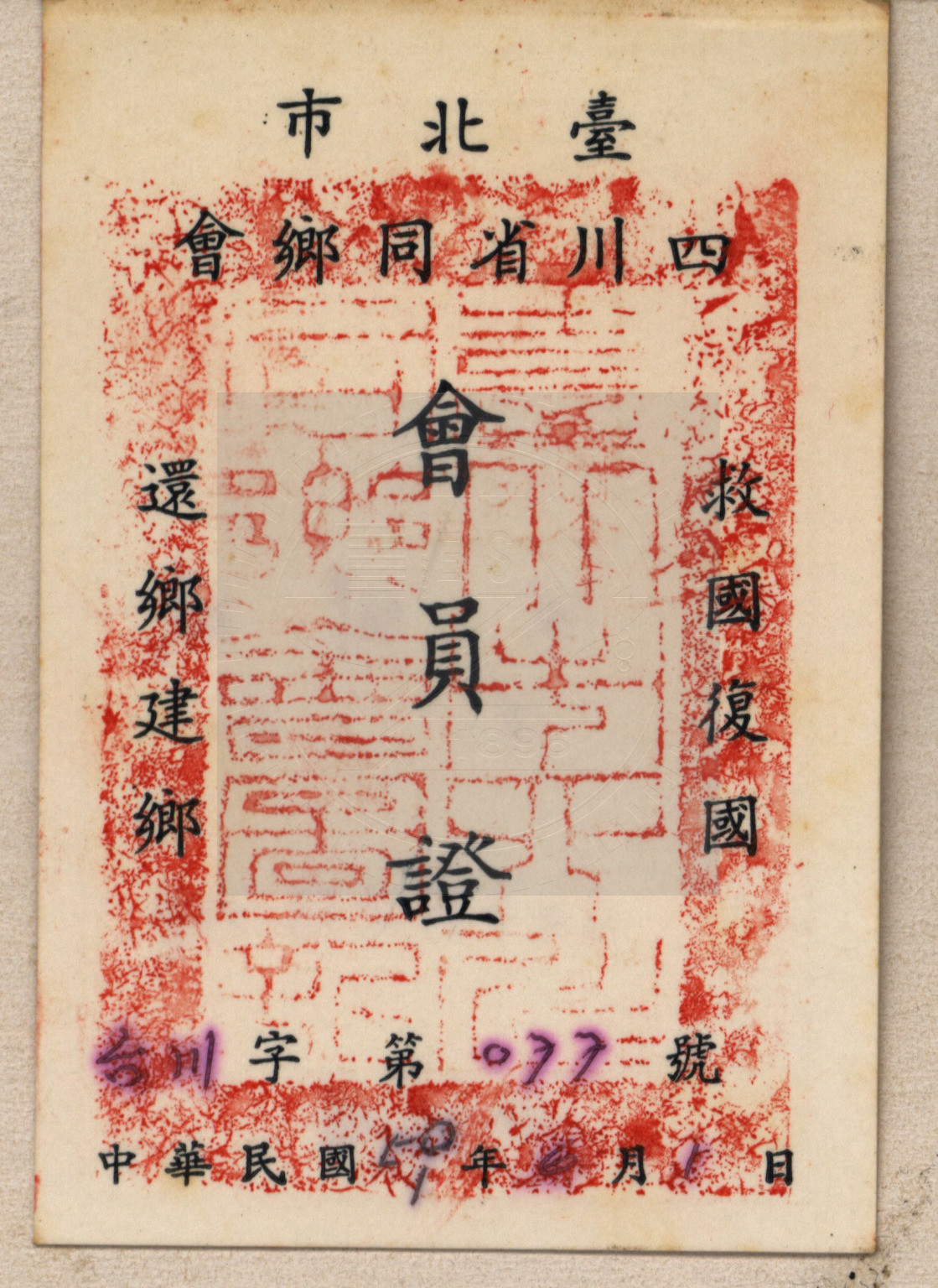 • 關鍵詞:臺北市四川省同鄉會會員證陳樹曦