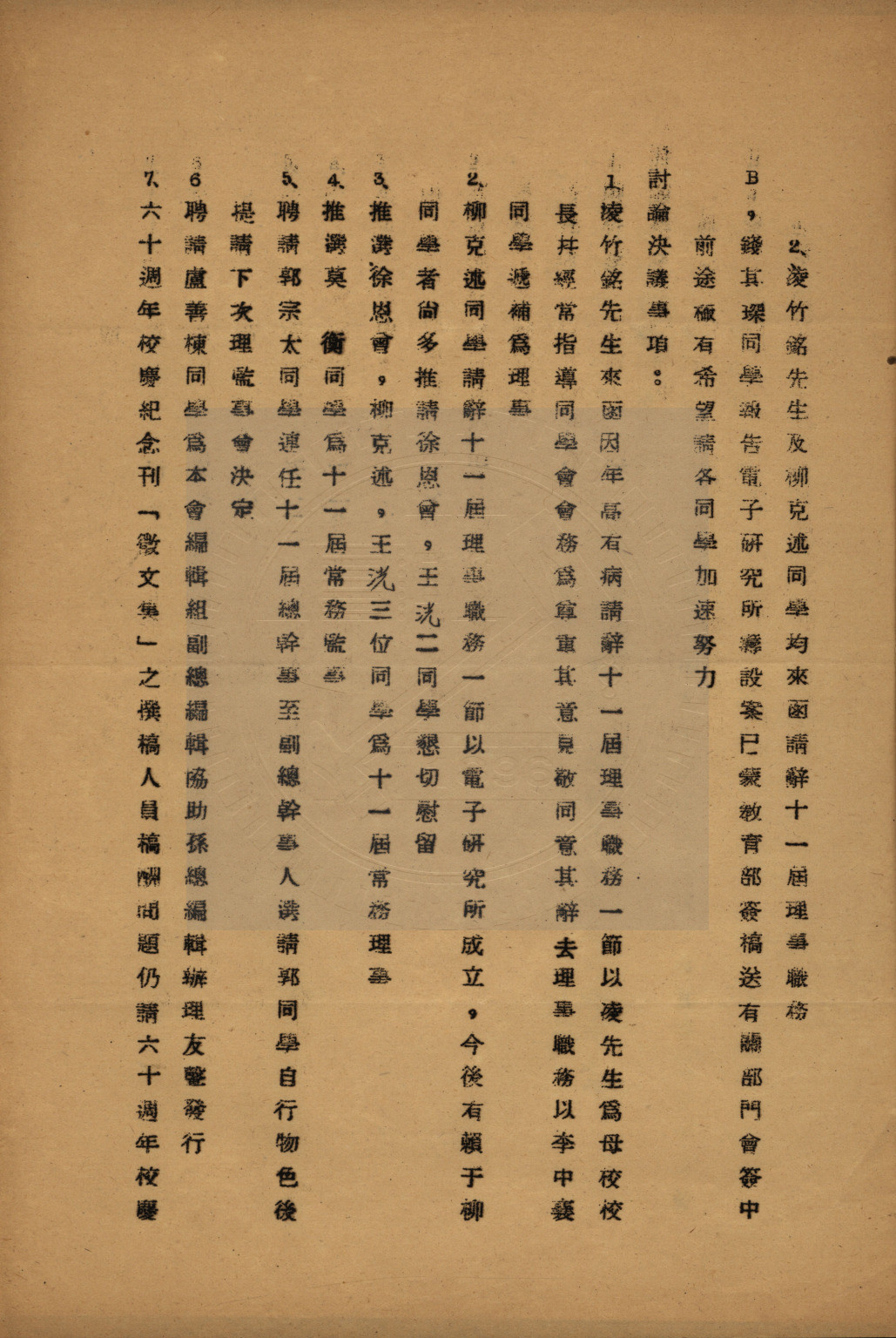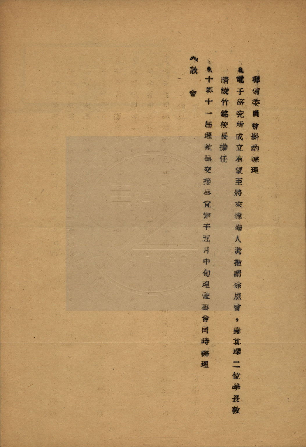 典藏地:交大校區 說明:國立交通大學同學會第十一屆理監事預備會議紀錄 (日期:民國四十六年四月十八日於台北鐵路管理局招待所)。 資料類型:會議資料 典藏號:302-0001-0001-010 品名:國立交通大學同學會第十一屆理監事預備會議紀錄 作者:- 年代:1957 出版者:國立交通大學同學會 數量:1件 稽核資料:2頁 版本: 油印稿 作品語文: 中文 關鍵詞:交通大學同學會、理監事、預備、會議紀錄 權利聲明:國立陽明交通大學圖書館珍藏資料,如需引用,請註明來源。 取用權:開放