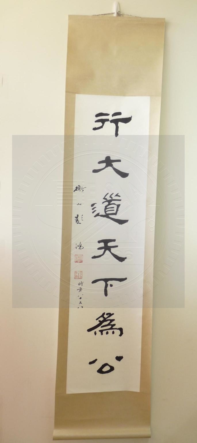 典藏地:交大校區 說明:百年百家書法展-彭鴻(上、下)。內容:育英才百年斯慶 行大道天下為公。(卷軸) 資料類型:文物 典藏號:305-0505-0098 品名:百年百家書法展-彭鴻(上、下) 作者:彭鴻 年代:1996 出版者:- 數量:2幅 稽核資料:W34 x H134 cm 版本: 手稿 作品語文: 中文 關鍵詞:百年百家書法展、彭鴻 權利聲明:國立陽明交通大學圖書館珍藏資料,如需引用,請註明來源。 取用權:開放