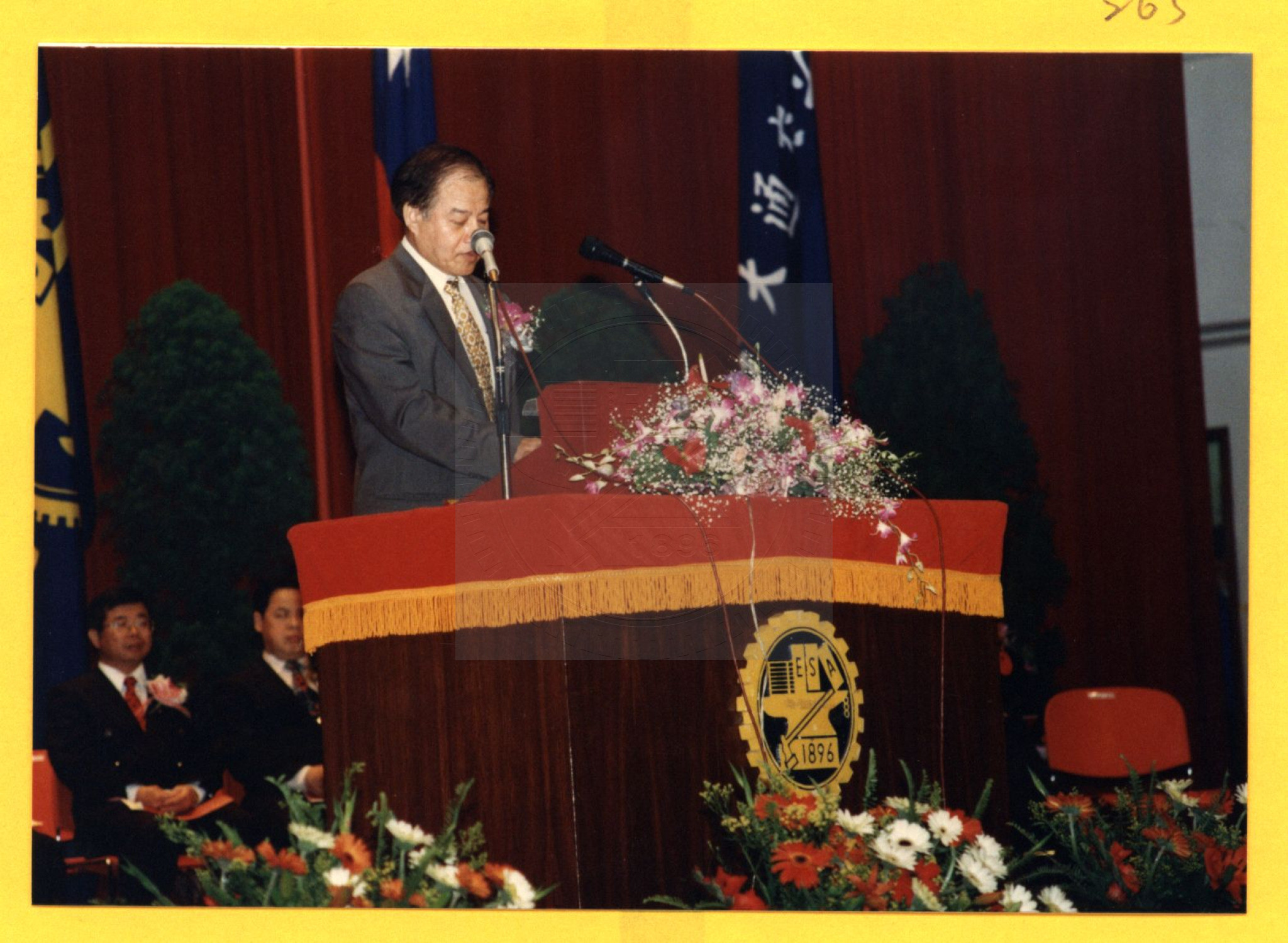 典藏地:交大校區 說明:交通大學一百週年校慶慶祝大會 鄧啟福校長致辭。民國85年4月8日,地點:中正堂。 資料類型:照片 典藏號:306-1996-0002-265 品名:交通大學一百週年校慶慶祝大會 鄧啟福校長致辭 作者:- 年代:1996 出版者:- 數量:1幅 稽核資料:W12.5 x H9 cm 版本: 照相複本 作品語文: - 關鍵詞:交通大學、一百週年、校慶、鄧啟福、校長 權利聲明:國立陽明交通大學圖書館珍藏資料,如需引用,請註明來源。 取用權:開放