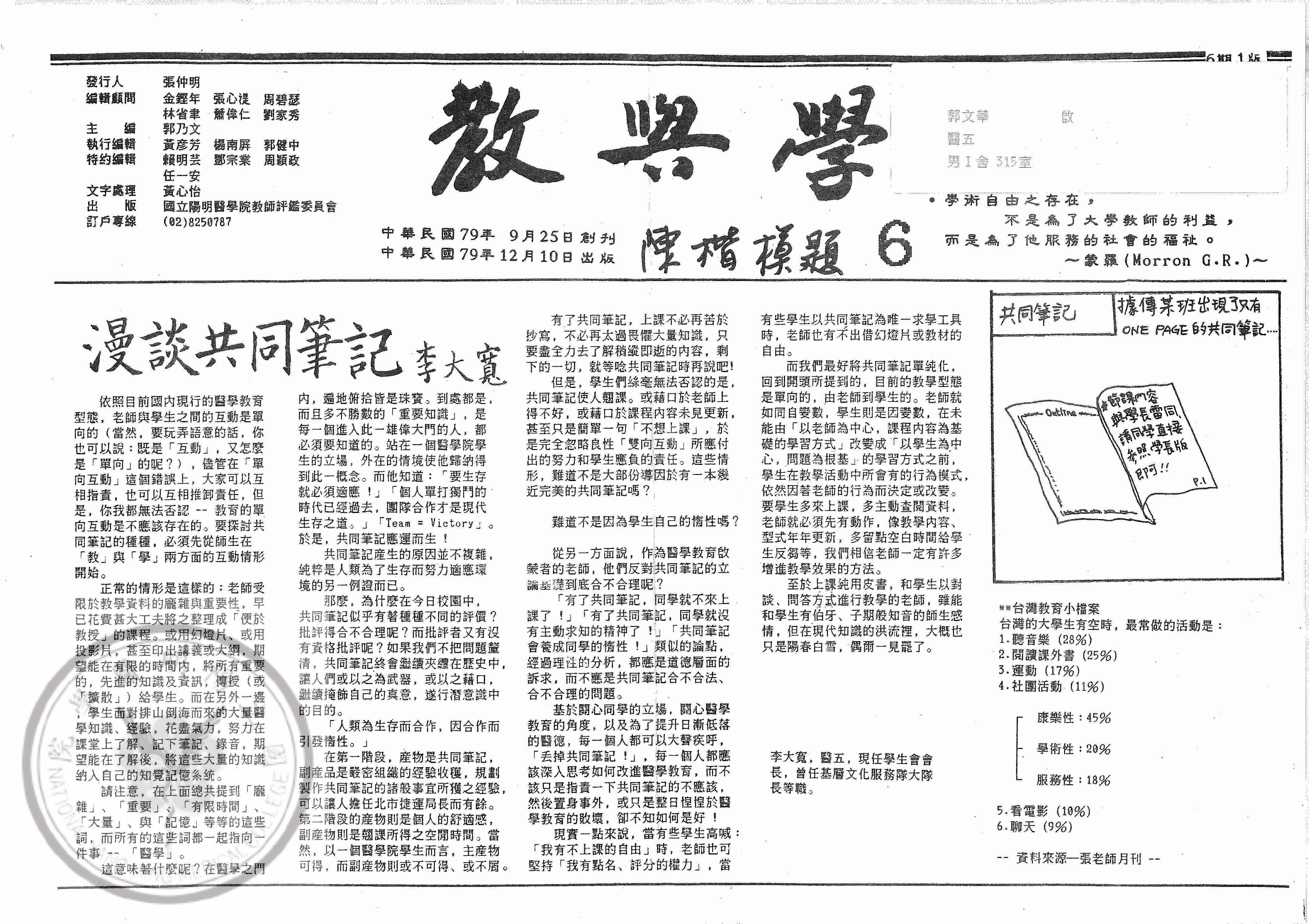 教與學第6期,內容:漫談共同筆記;護理教育中的自我評值方法;看一下而已 談作弊;「中韓醫學交流」;..