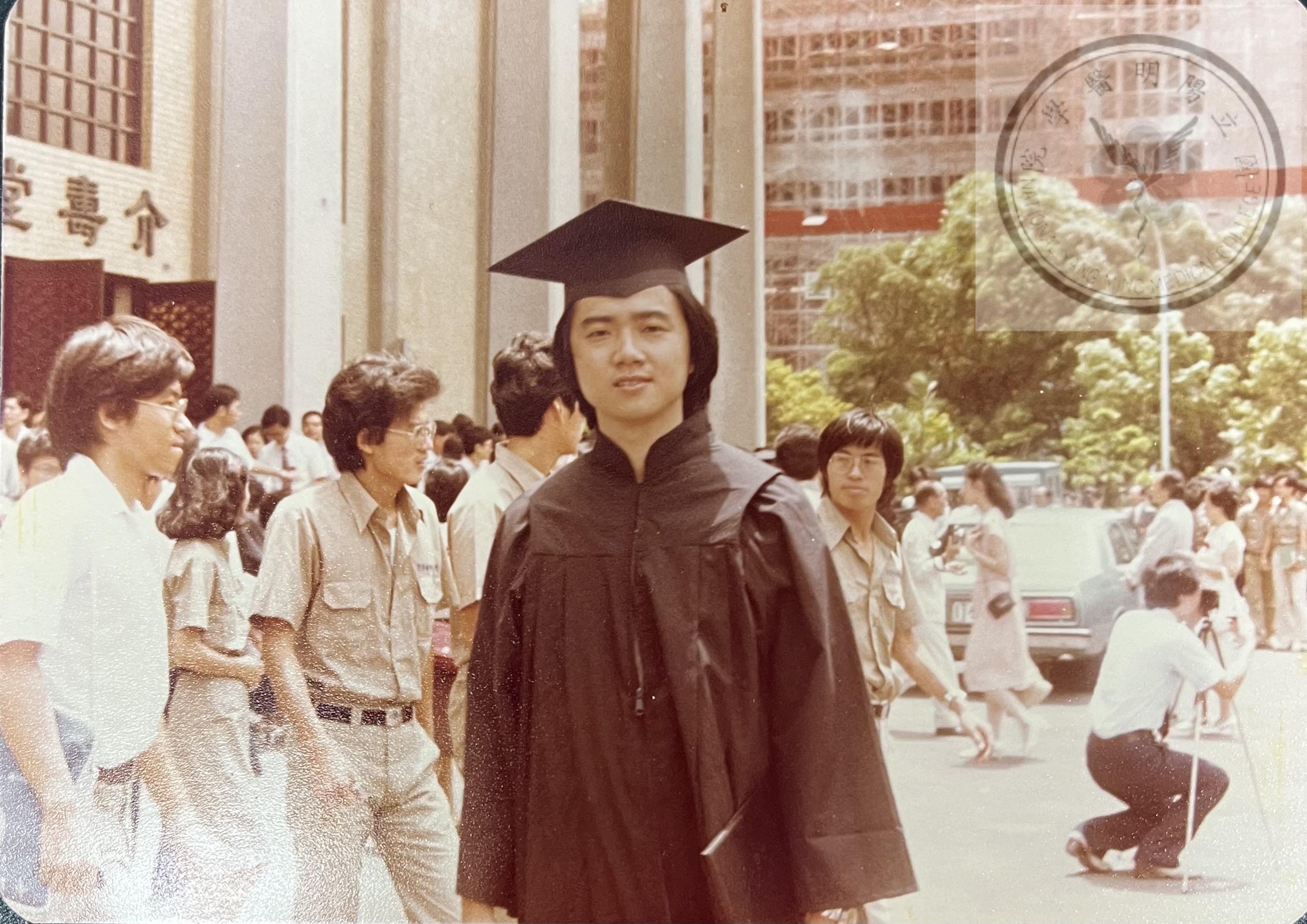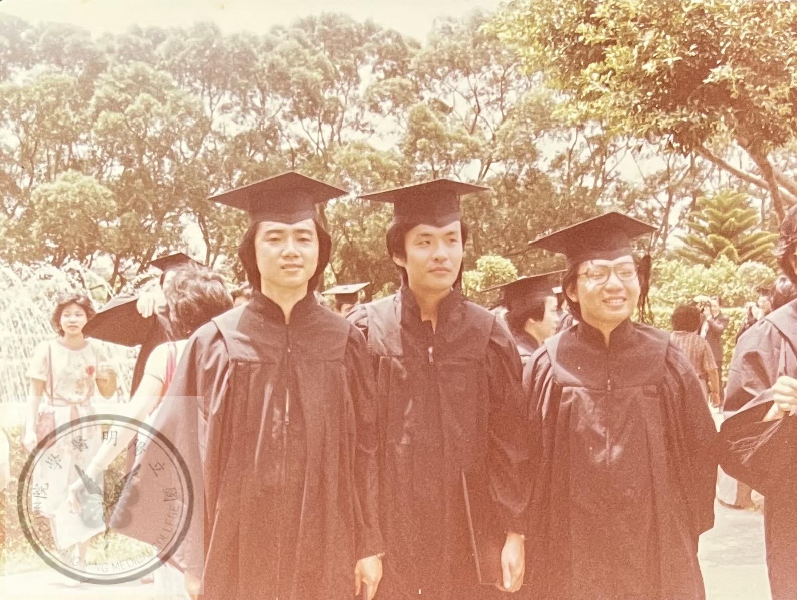 謝宏榮校友於畢業典禮時,在榮總介壽堂前留影。/謝宏榮捐贈