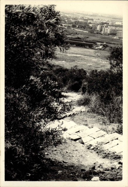 實驗大樓直通運動場之便道旁充滿了雜草。