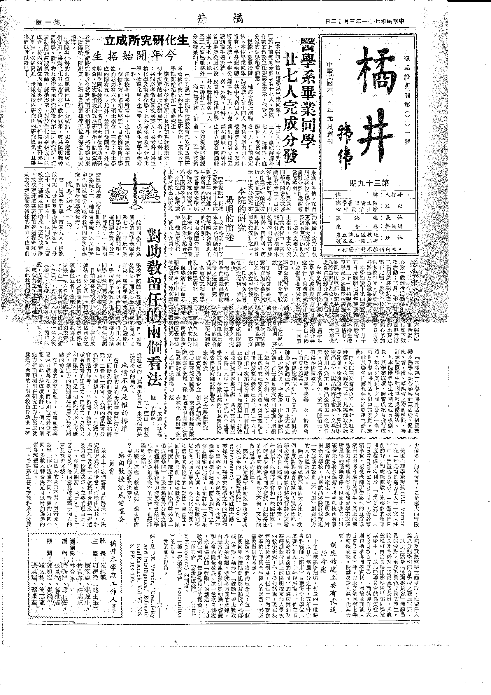 橘井 第39期。內含:醫學系畢業同學,二十七人完成分發、生化研究所成立、本院的「研究發展委員會」等。