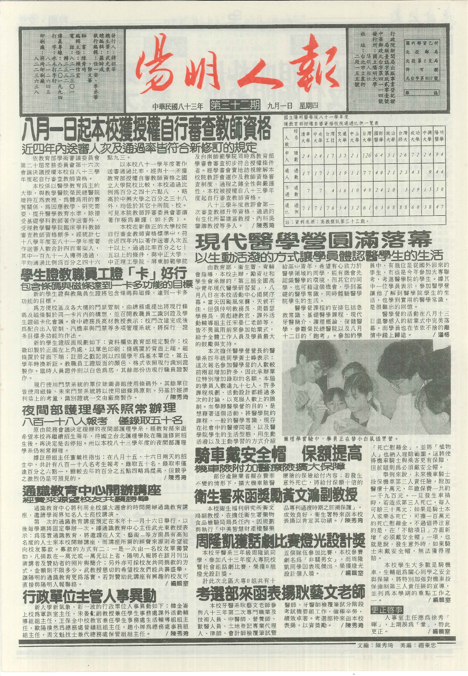 陽明人報 第三十二期,內容含:現代醫學營圓滿落幕;學生證教職員工證一卡多功能;機車險加醫療險擴大保..