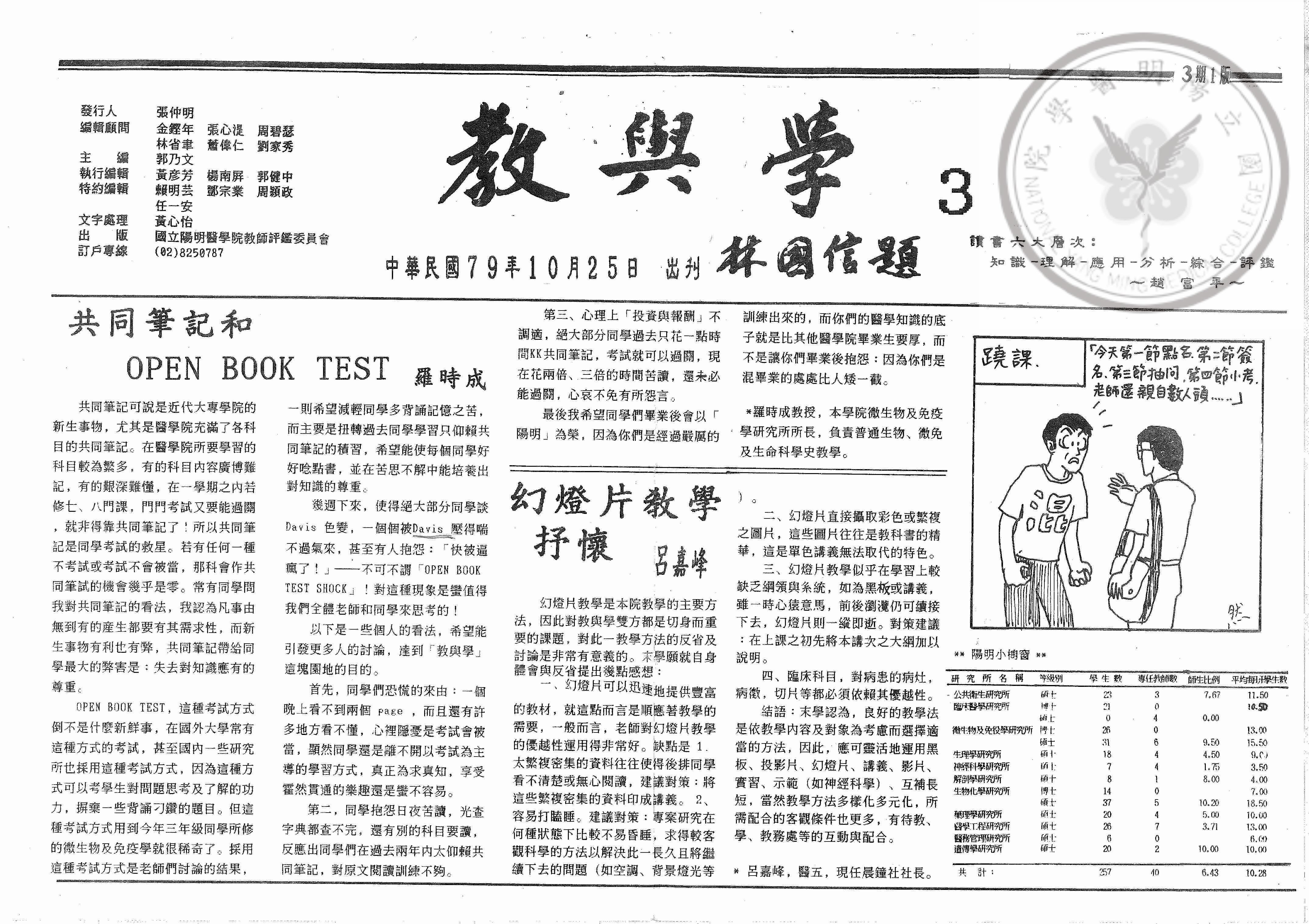 教與學第3期,內容:共同筆記和 open book test;幻燈片教學;專題:學生評值;「微免考..