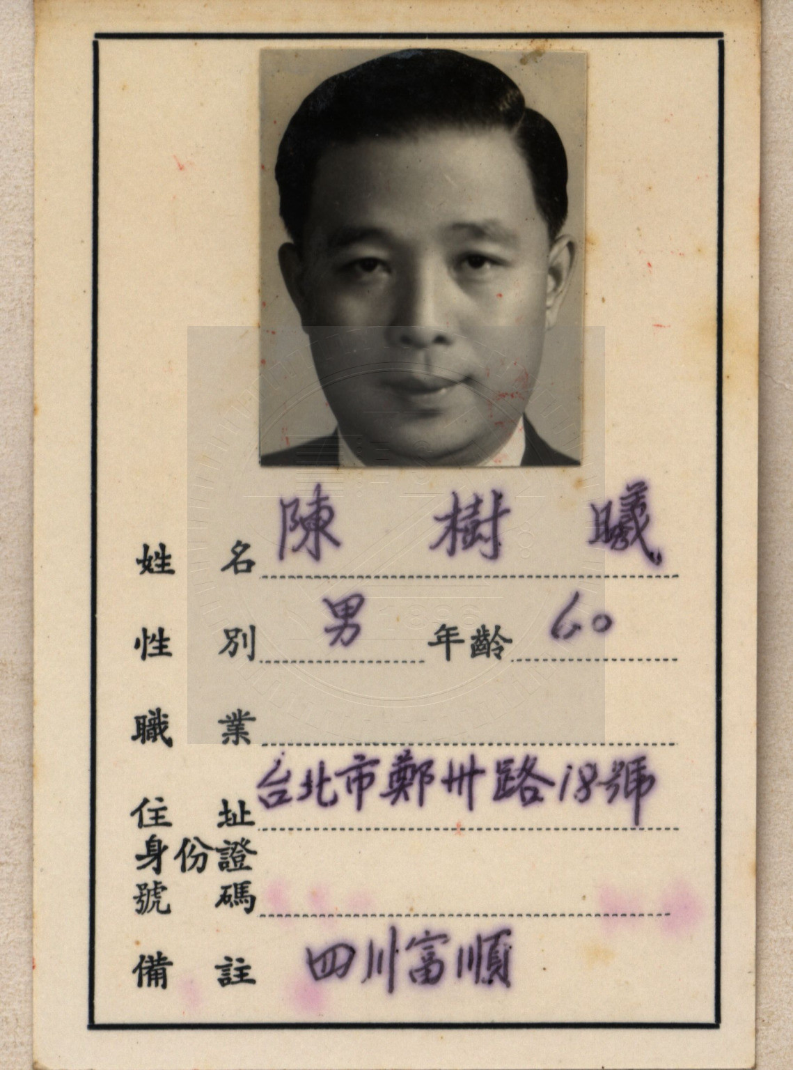 陳樹曦學長之臺北市四川省同鄉會會員證。