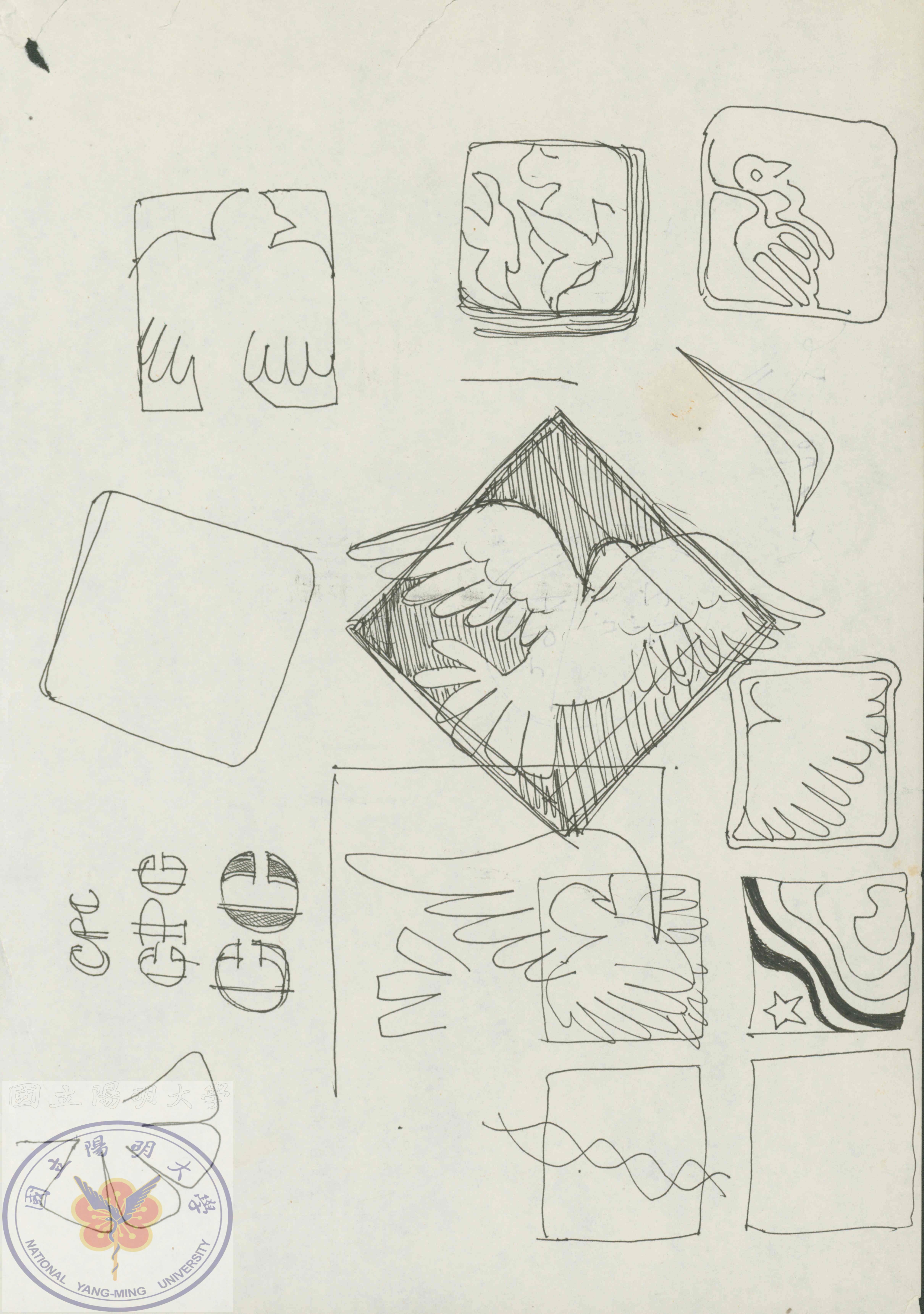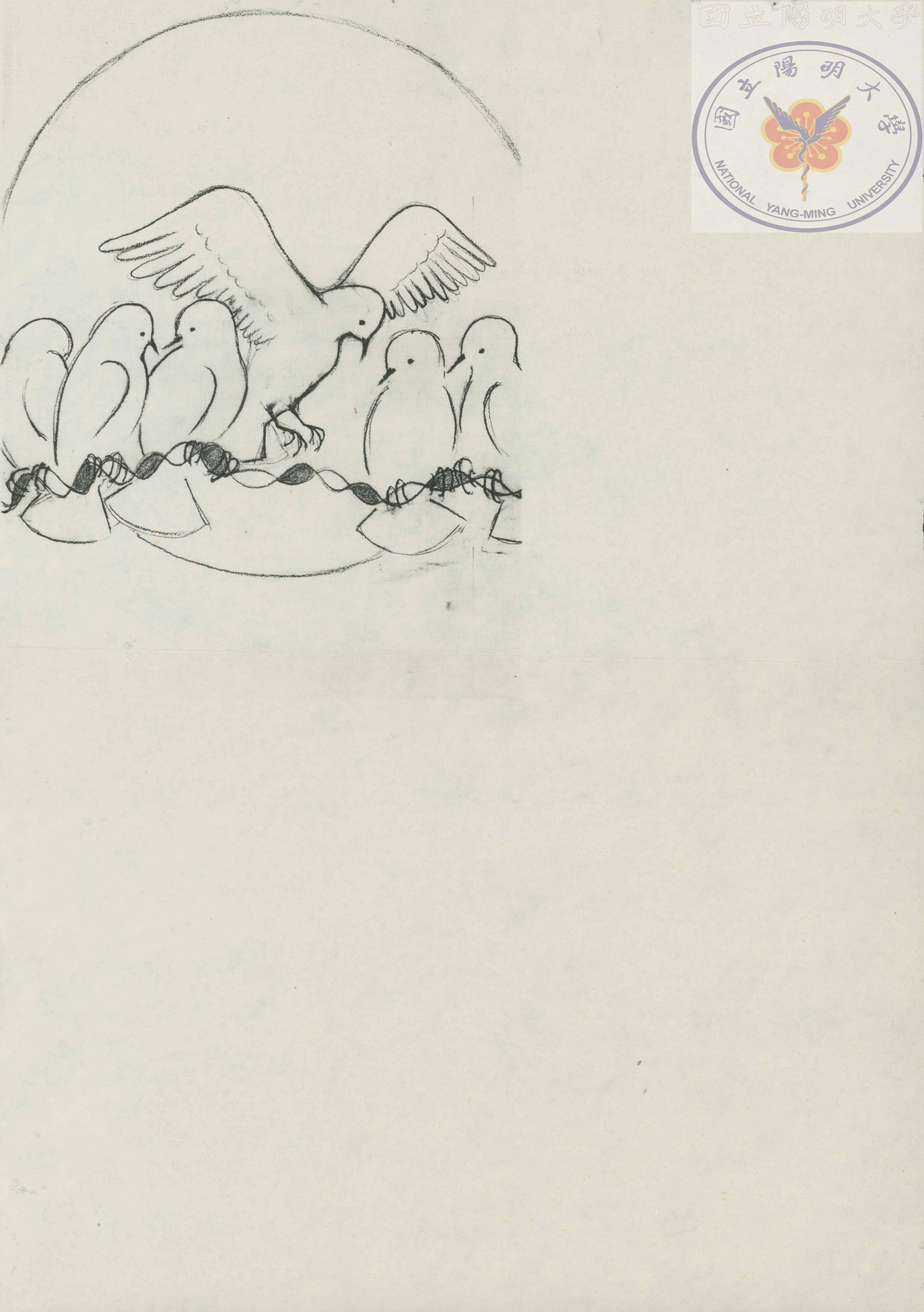陳文盛老師繪製的生物夏令營T恤設計圖,圖像為鴿子。/陳文盛捐贈