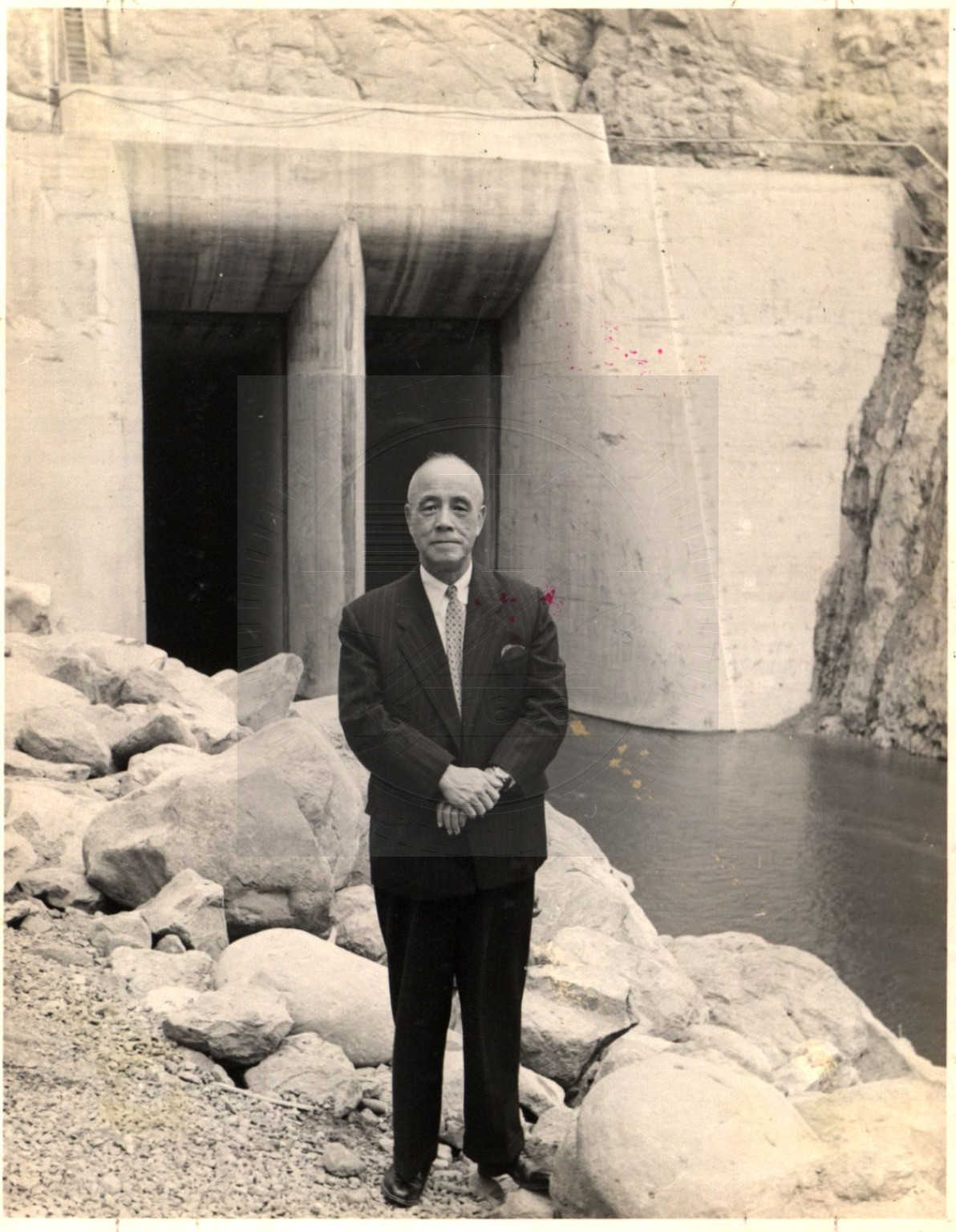 淩鴻勛先生攝於石門水庫導水隧道進水口。說明:1、民國51年10月。2、淩鴻勛先生於民國45年至53..