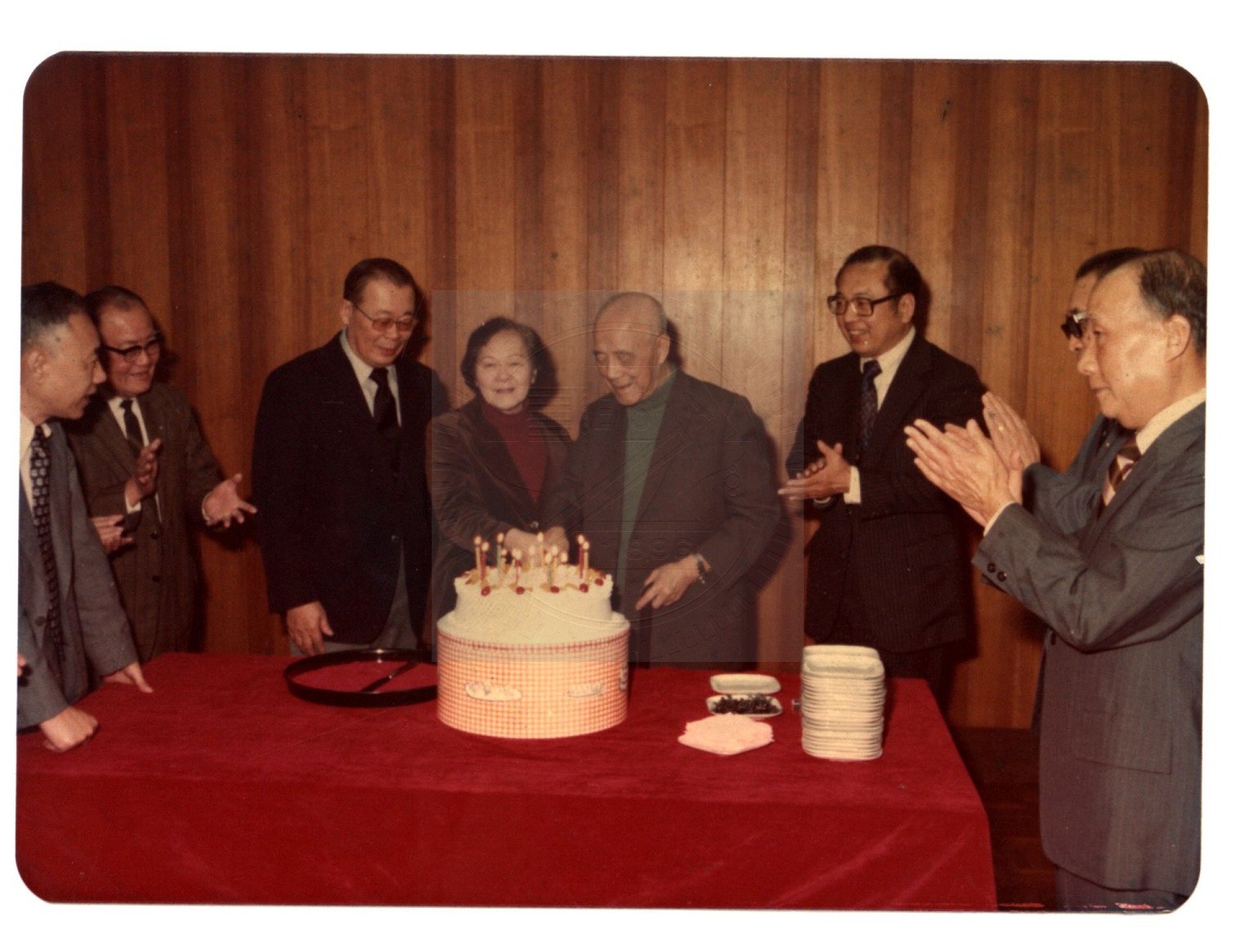 中油公司同仁為淩鴻勛先生祝壽。說明:淩鴻勛先生時年八十五;民國67年3月10日攝於中油公司九樓會議..