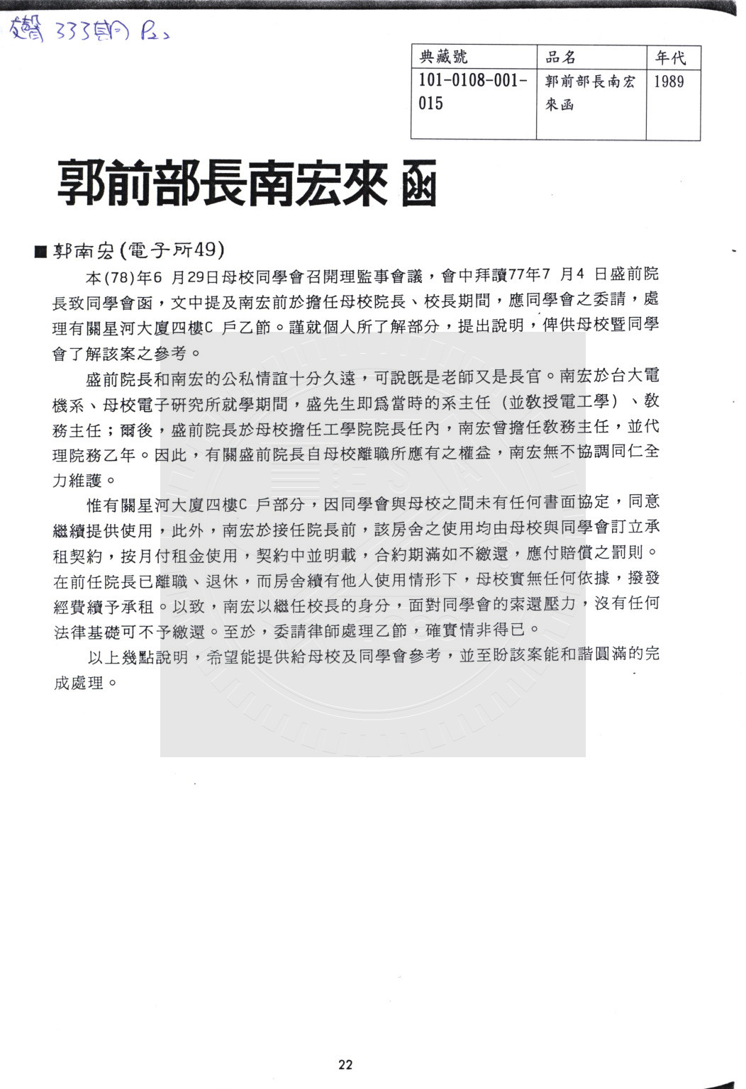 郭前部長南宏來函,刊載於《友聲》第333期 第22頁。