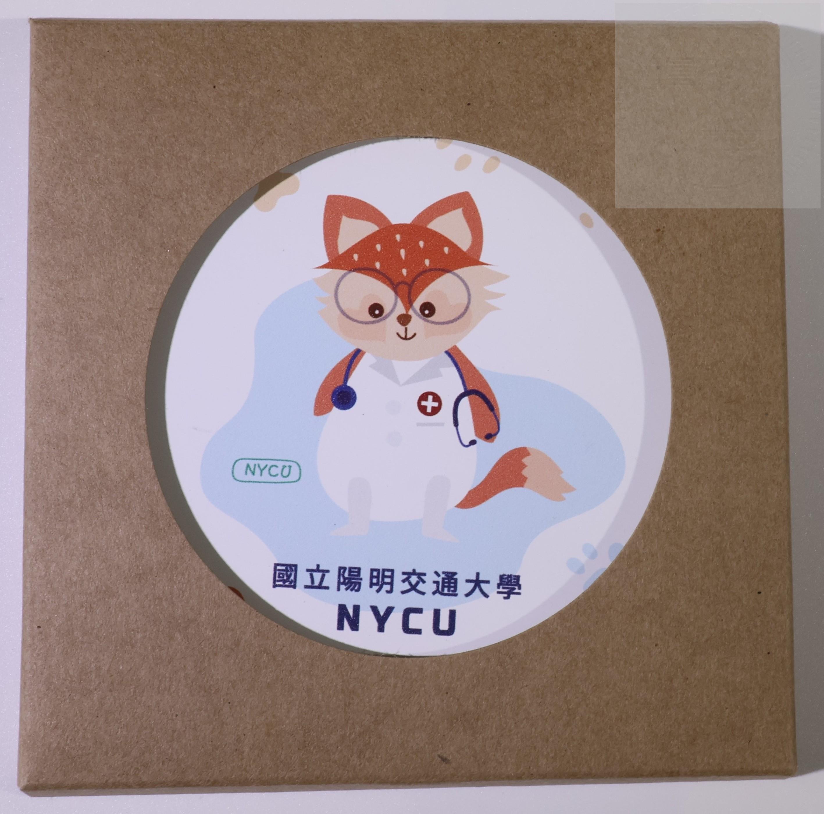 2023年交大日校系博覽會集點活動贈品紀念杯墊,圖像為穿著醫師袍的竹狐。