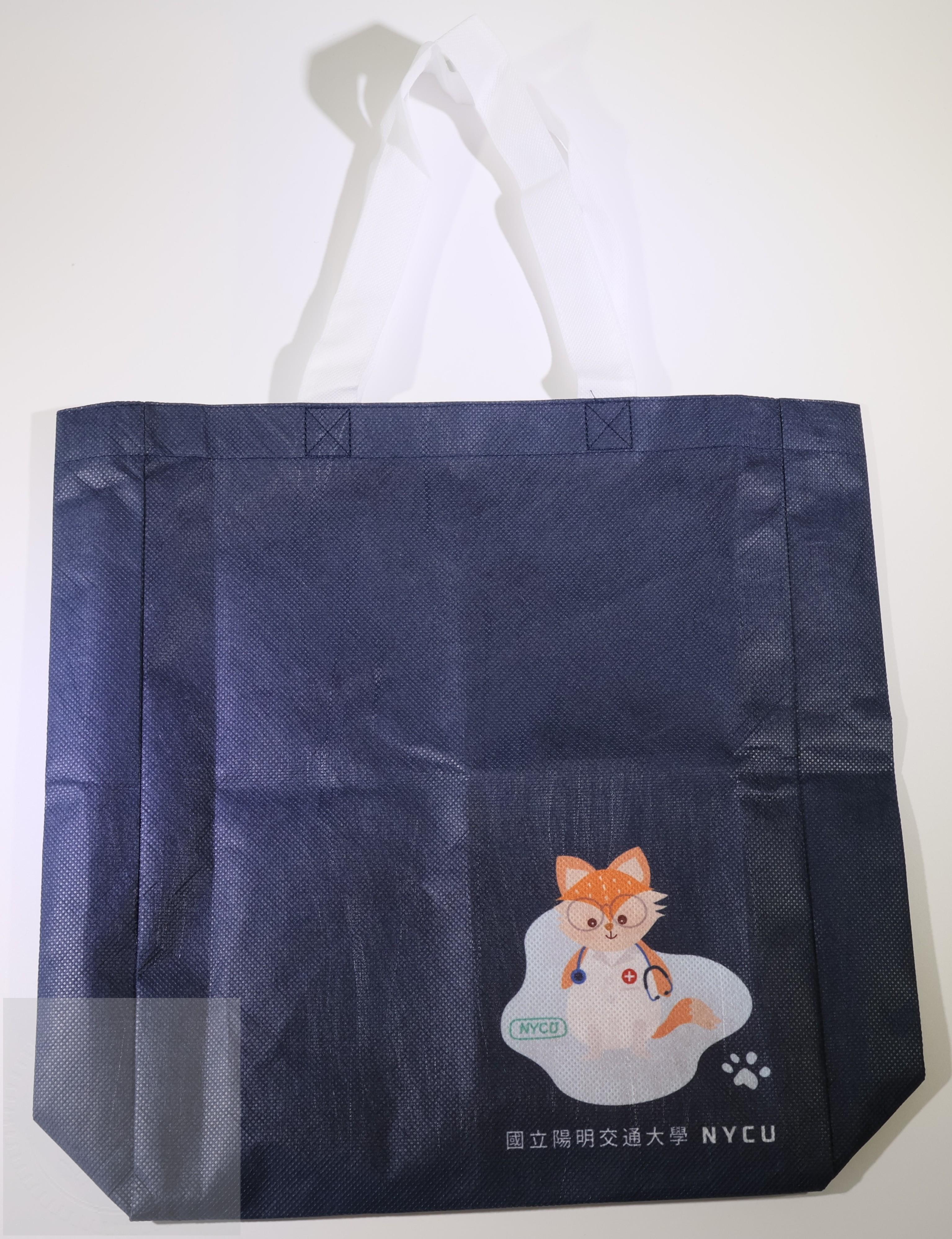 2023年交大日校系博覽會紀念環保袋,上有圖像為穿著醫師袍的竹狐。