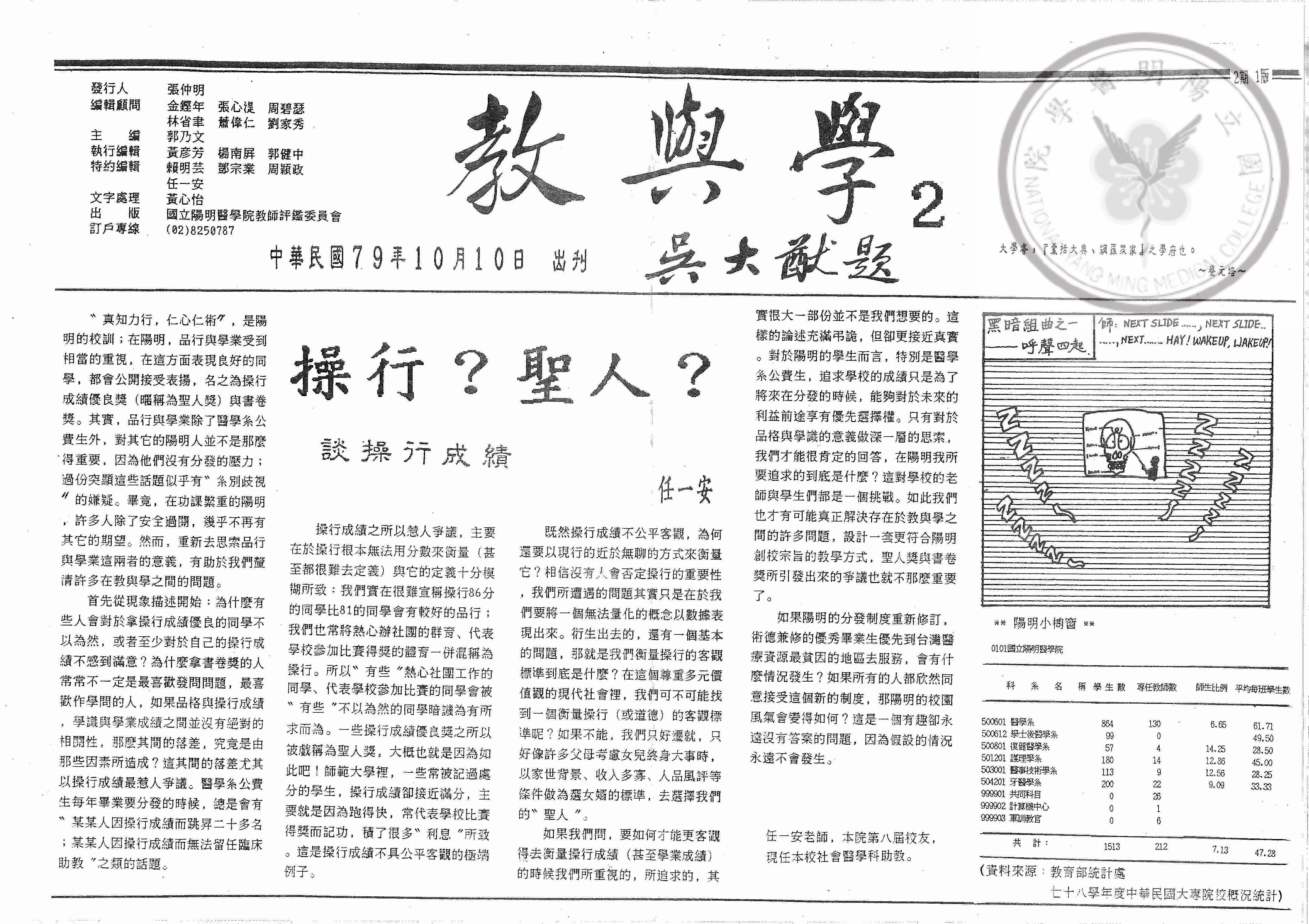 教與學第2期,內容:操行?聖人?談操行成績;專題「神秘故事」教學;選修課程風波多;師生不相見?;護..