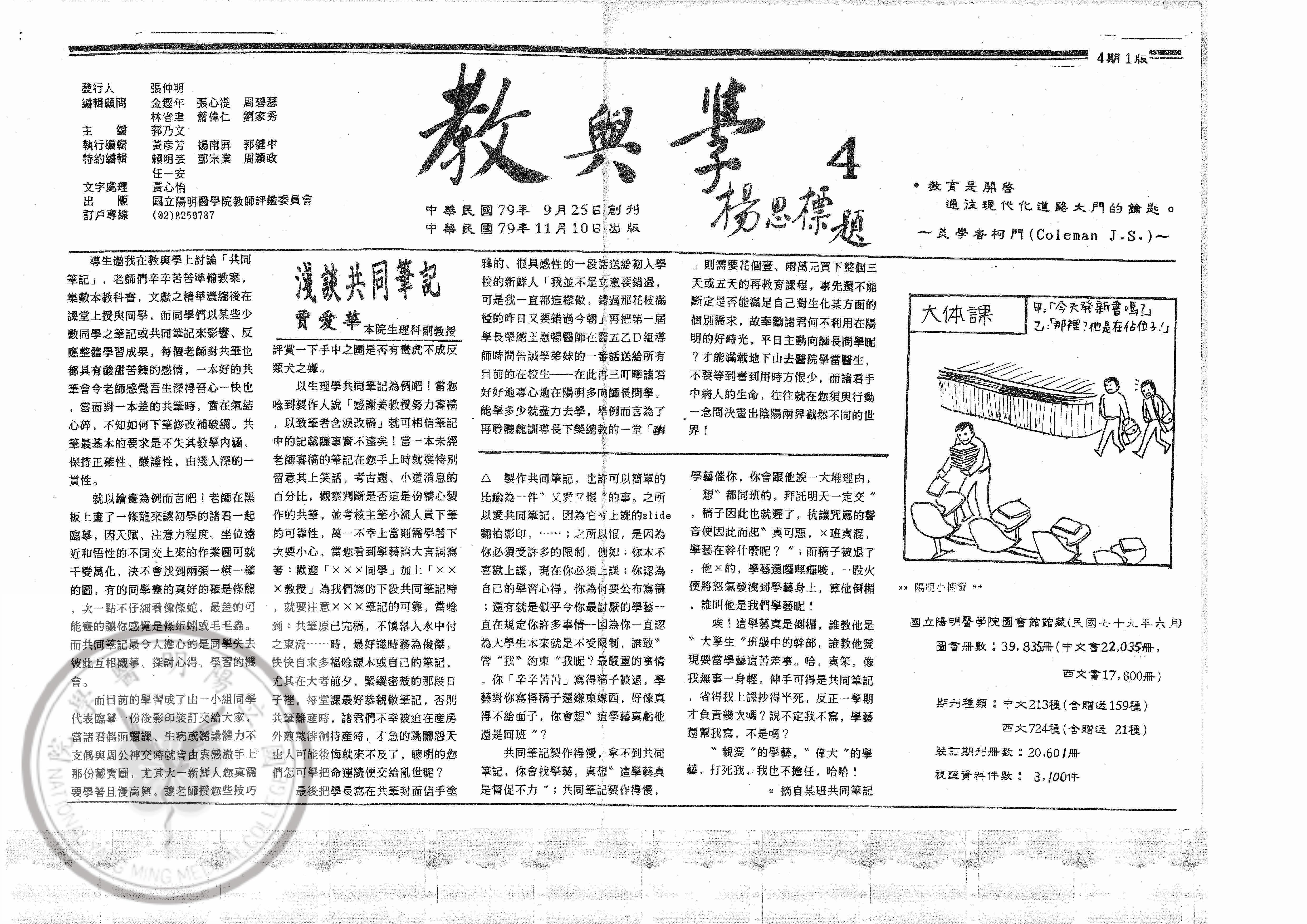 教與學第4期,內容:淺談共同筆記;專題:醫學教育的方向(上);Open Book 後面的一些聲音;..