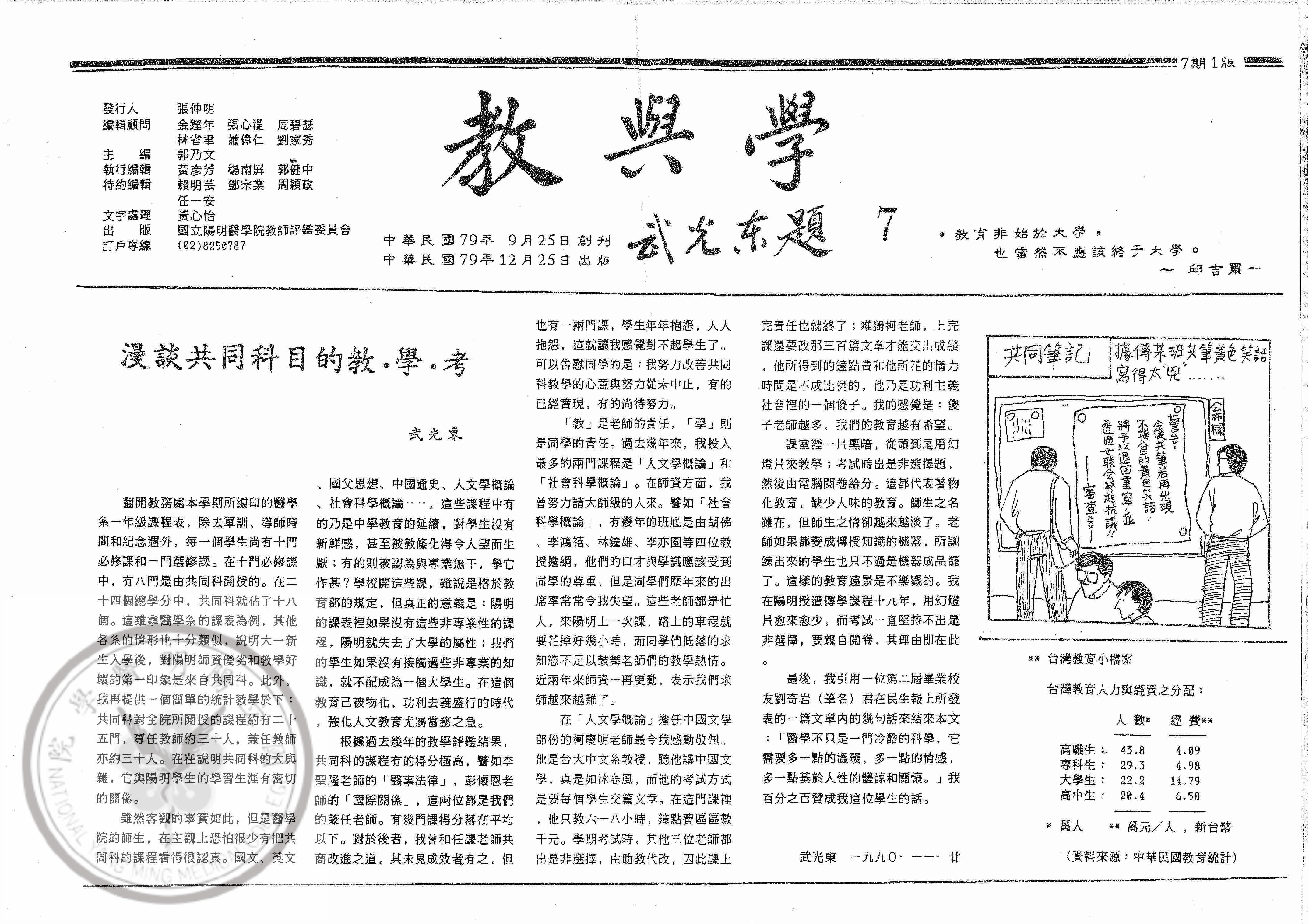 教與學第7期,內容:漫談共同科目的教.學.考;醫學教育中的人文精神;「醫學課程重新規劃」;護三.學..
